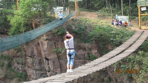 “野狼队”不愧为野狼队,正如他们口号中所喊的一样:野狼出击,所向无敌!15位年轻的队员互相鼓励,相互支持,顺利将两个项目挑战成功。虽然,他们挑战的过程很艰难,但还是坚持完成挑战。最让人感动的是,在挑战“空中断桥”时,有一位女同事让在场所有人为她捏了一把汗,高台上,她因有恐高症而止步不前,高台下,队友们不停地为她呐喊助威,那一刻,大家仿佛不再陌生,而是亲如兄妹。终于,女同事在大家的鼓励中成功地完成挑战。当看到她挑战成功后呕吐的那一瞬间,大家被震撼了。她圆满完成挑战,除了源于她自己的坚强和勇气外,更多的则是来自团队的力量,这便是这次训练所要达到的目的之一。