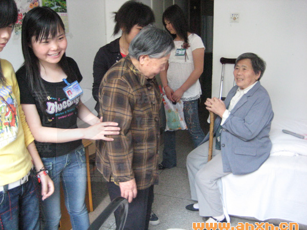 老妈妈们被同学们精彩的表演打动着,不禁与同学们一起合唱起流行歌曲和黄梅戏,老少同乐,深情感人。同学们还争着帮老妈妈们捶肩揉背,打扫卫生,让老人们真实的感受到子女承欢膝下的喜悦,当同学们为老人剥开香蕉放到他们手里时,有的老人感动得哭了,她们说,这个母亲节,她们不再孤独。
