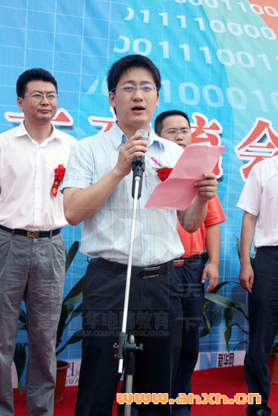 新华教育集团副总经理、安徽新华电脑专修学院院长沙旭预祝本次人才招聘会圆满成功
