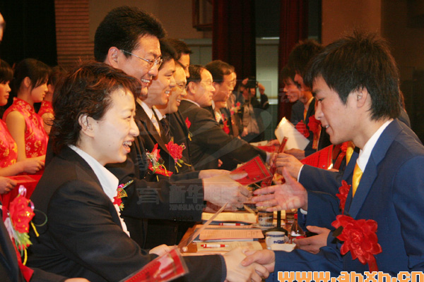 后记:新华奖学金的颁奖受到了社会各界广泛关注和一致好评。中共安徽省委、省人民政府,国家信息产业部、教育部、共青团安徽省委,劳动和就业部门等各级领导,以及国际著名IT机构均先后出席了 “新华•微软MLC1000万元奖学金”的历次颁奖大会,并为获奖学子颁奖。