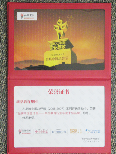 首届中国品牌节,新华教育集团力捧品牌中国金谱奖