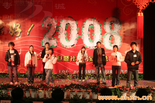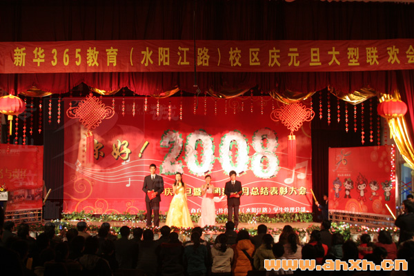 新年的钟声即将敲响,时光的车轮又留下了一道深深的印痕。从28号早上8点开始,安徽新华电脑专修学院365国家紧缺型人才培养计划(水阳江路)校区,就开始进入一种浓重、祥和的节日氛围之中。校园内,宣传橱窗焕然一新,窗户玻璃洁净无几,彩色气球、灯饰缠绕会场。宽阔的会场内,“新华365教育基地(水阳江路)校区庆元旦大型联欢会”几个大字显得喜庆而不失庄重。