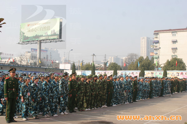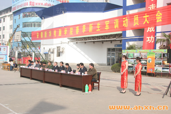 3月11日上午,安徽新华电脑专修学院校园内红旗招展,军姿整齐,一片橄榄绿的海洋,2008年春季新生军训动员大会在这里隆重举行。安徽新华电脑专修学院张明院长、学院各学区、各部门相关负责人及安徽省武警总队直属支队领导出席了此次大会。