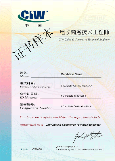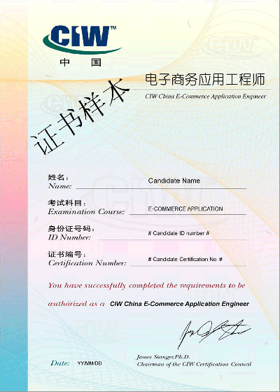 注:以上每门课程通过后可获得美国 VCampus 公司颁发的电子商务类分证书一张, 通过全部三门后可获得 CIW 电子商务专家总证书。