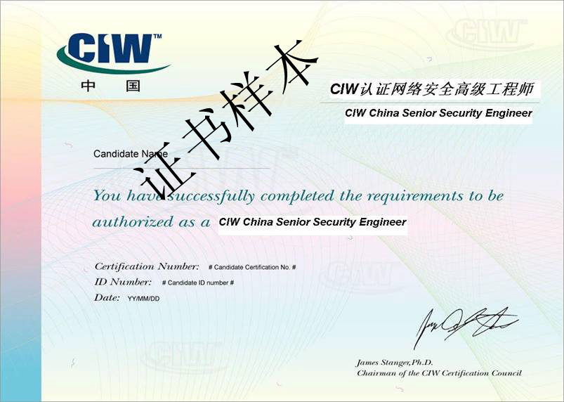 注:以上每门课程通过后可获得美国 VCampus 公司颁发的网络安全类分证书一张,通过全部三门后可获得 CIW 网络安全高级工程师总证书。