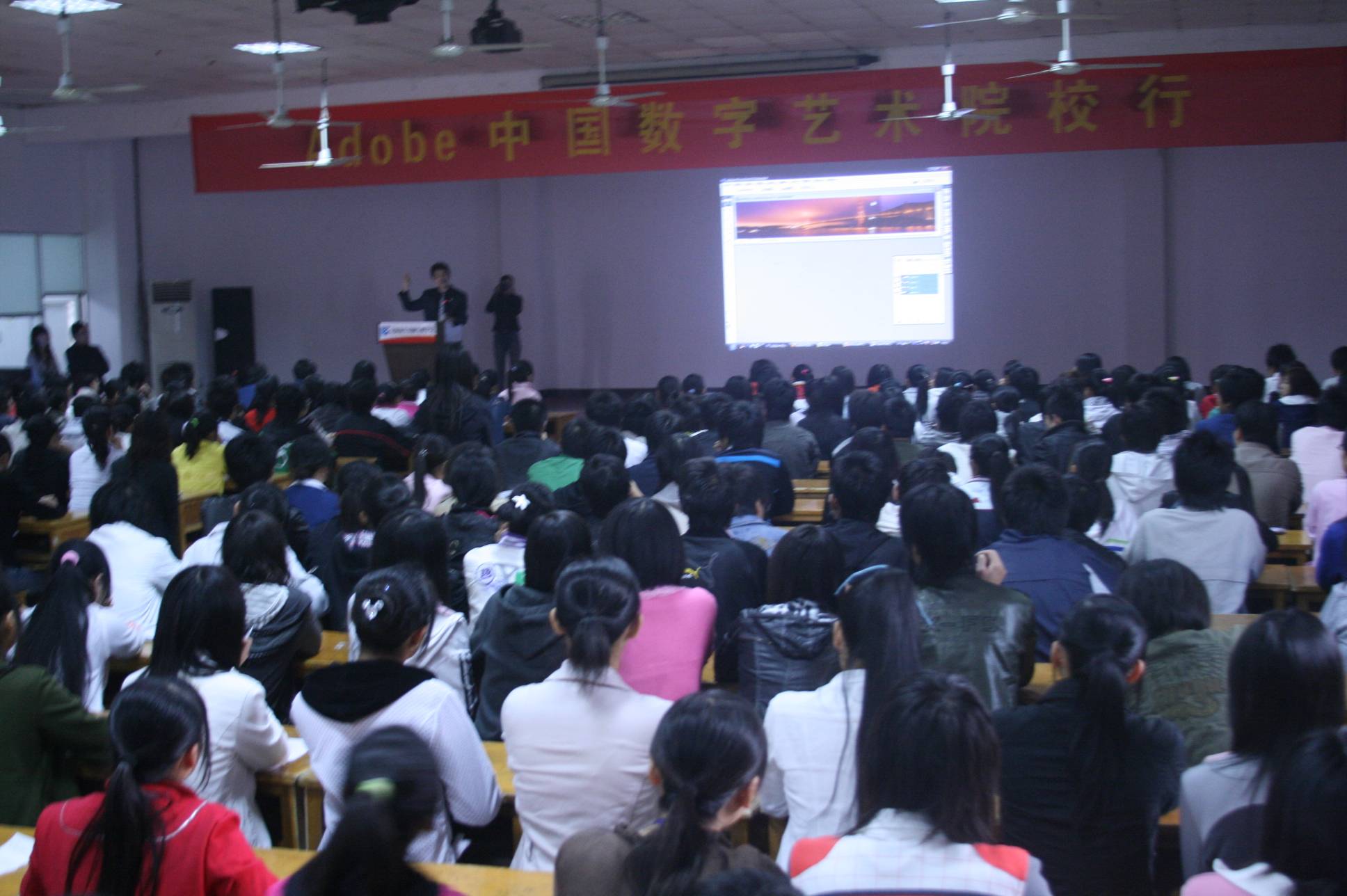 11月1日,一场由我院西校区、考试中心邀请Adobe中国数字艺术院校行联合举办的Adobe知识讲座在学院西区多功能厅举行。来自08年新生班级的400余名新生参加了本次讲座,Adobe中国数字艺术院校行知识讲座王东主讲以生动的语言和丰富的知道引领同学们进入了Adobe数字艺术的更高的认识层面。