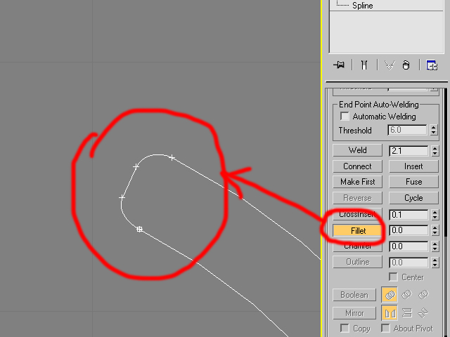1、在前视图中创建一如下图所示的线形,碗的半侧基本形