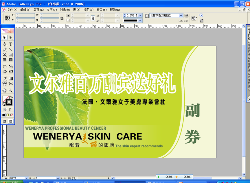8、输入文字内容“法国•文尔雅女子美肤专业会社”、“Wenerya professional beauty cencer”、“wenerya skin care”、“The skin eapert recommends”、“乘着美丽的翅膀”