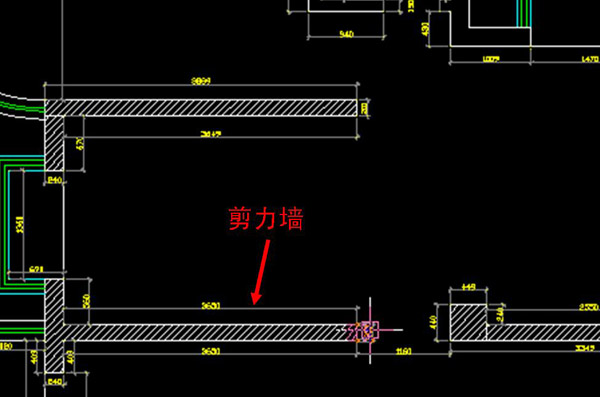 图中黑色的部分就为承重墙。下面在给大家看一张cad施工图(图中阴影部分即为承重墙)