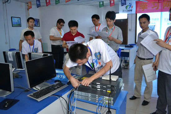 据了解,本次大赛评委们将从以下几个方面对学生组参赛选手的实际操作项目进行现场评分,评分的目标分别为:服务器安装,线路架设、设备调试、配置服务器、无线网络的接入和设备登录密码设置等。