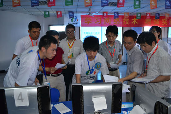 网易教育讯 6月23日,“CNCIW 新华”网络技术技能实训大赛江西赛区,安徽新华电脑专修学院学生组参赛选手们在经过22日一整天的实际操作后,终于向大赛评委们交出了自己满意的答卷。
