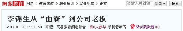 网易教育讯 2003年7月,大专毕业后李锦生在合肥找工作,一向成绩不错的他,虽然拥有学历,但由于缺乏一技之长,在一次次的面试失败后,几乎成了“面霸”。那时的他第一次对自己的学历感到了沮丧。回家后,看到愁眉不展的双亲,虽然也替他难过,可是他们还是在不断的安慰他,鼓励他。痛定思痛,一个月后,他终于想通了,决定去学习计算机,去追寻另一条通往成功的人生之路。