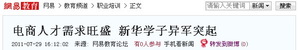 据了解,近年来,电子商务行业招聘需求很旺,一些用人单位抢先与新华建立长期的人才合作关系,试图通过该途径找到电子商务专业出身的优秀人才,并以高薪和股权,以期组成一支专业、成熟的人才队伍。