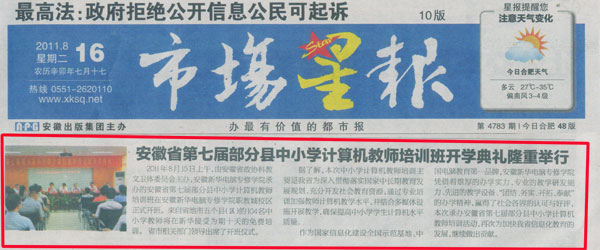 《市场新报》报道:安徽省第七届部分县中小学计算机教师培训班开学典礼隆重举行