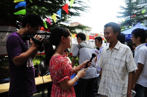 阿里巴巴人事经理正在接受合肥电视台记者的采访