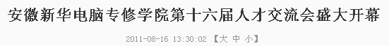 21世纪是信息高速发展的时代采访,不管是企业品牌推广、业务联系、内部交流,都离不开IT人才。安徽新华电脑专修学院作为一所知名的IT院校,新华学子的精湛技能更是早已扬名千里,自然吸引了众多用人单位的青睐。据介绍,本次人才交流会共吸引了来自全国各地200多家用人单位前来招贤纳才。如浙江省新华书店集团有限公司、浙江省档案事务所、浙江邮电工程局、浙江八方电信有限公司、申通快递有限公司、成都鹏博士电信传媒集团、江苏泗水动漫有限公司、上海德搜信息技术有限公司、台州诺亚方舟网络技术有限公司、上海火速网络科技有限公司等。