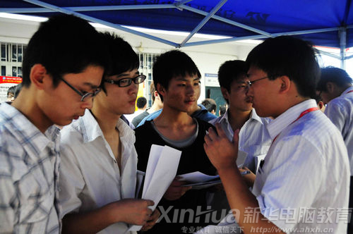 网易教育讯 日前,安徽新华电脑专修学院内展位云集,百家企业云集于此招贤纳士,然而新华学子们则在此“席珍待聘”。据统计,本次校园招聘会共有浙江省新华书店集团有限公司、浙江省档案事务所、浙江邮电工程局、浙江八方电信有限公司、申通快递有限公司、成都鹏博士电信传媒集团、江苏泗水动漫有限公司、上海德搜信息技术有限公司、台州诺亚方舟网络技术有限公司、上海火速网络科技有限公司等等200家单位前来招聘,提供室内装潢、广告设计、网络技术、软件开发、影视制作、动漫游戏等1000多个就业岗位。