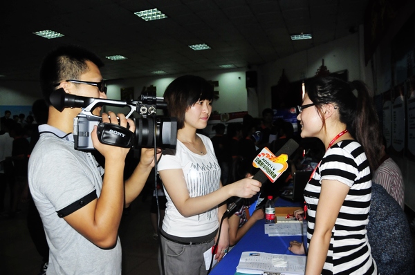 阿里巴巴人事经理正在接受合肥电视台记者的采访