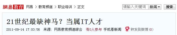 网易教育讯:21世纪是信息的时代 ,IT应用触及社会每一个角落。 金融 、电信、 电子商务、欧美及对日软件外包等行业和领域的迅猛发展 ,毋庸置疑会带来专业软件开发人才需求数量的大幅增长。同时随着我国互联网行业的全面复苏以及网络应用在更高层次上的大规模展开,我国的网络人才需求也在全新的层面上逐步呈现了出来。