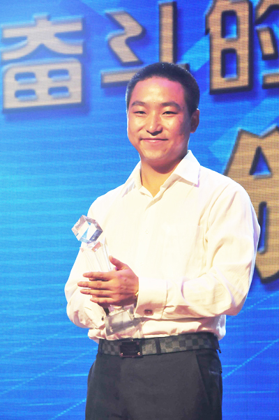 新华教育集团副总经理张明为精英奖获得者陈永祥颁奖