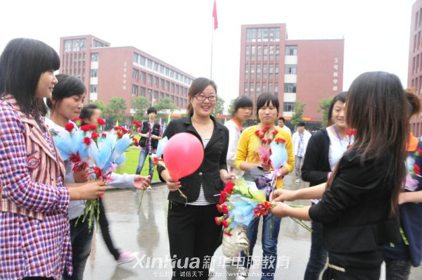 安徽新华电脑专修学院何贵金院长向老师们献花