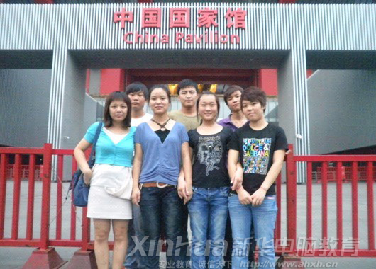 工作在中联公司的新华学子在世博馆外合影留念