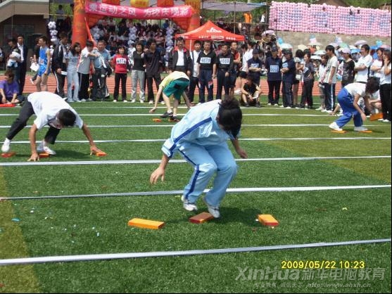 五、竞赛方法:赛道两头各一组,每组分三人自由组合,起点组手持四块“小地毯”,由第一名队员向前搭放“小地毯”,第三个队员不断地把身后的“小地毯”传给第一个队员,三人踩着“小地毯”前进30米,其距离为30米(以一篮球场宽为准,来回),要求脚不能触地,绕过障碍物回到起点,待三人全部过界后另一组将接过“地毯”以同样的方式往回走,最先到达起点的为胜。按时间记名次,按名次记分。