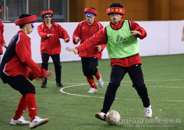 二.道具要求:1个足球(要用含气量不足的足球,这样每踢一下,球不会滚得太远)、蒙眼布。