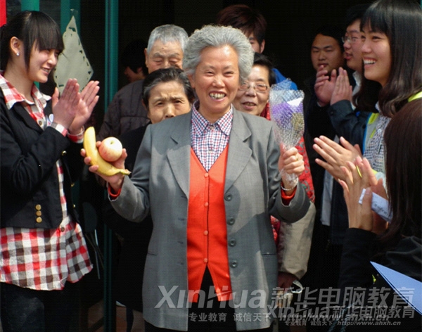 安徽新华电脑专修学院的同学们与夕阳红老年成的老人们合影