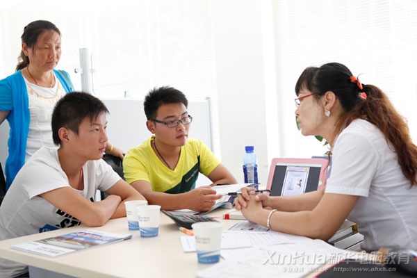 安徽新华电脑专修学院咨询师正在与前来报名的新生进行专业讲解