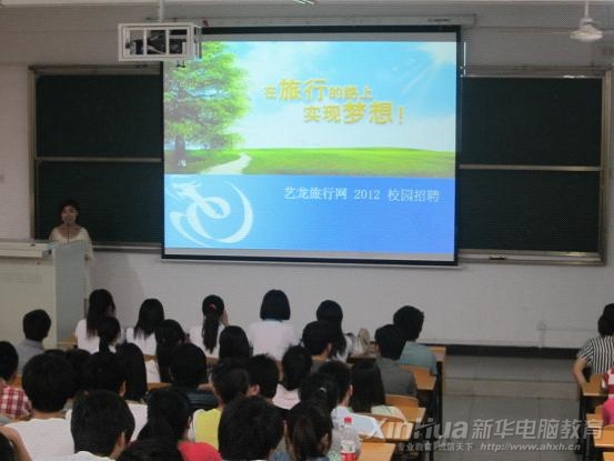 合肥艺龙旅行网毛辉总经理正在与新华学子相互交流中