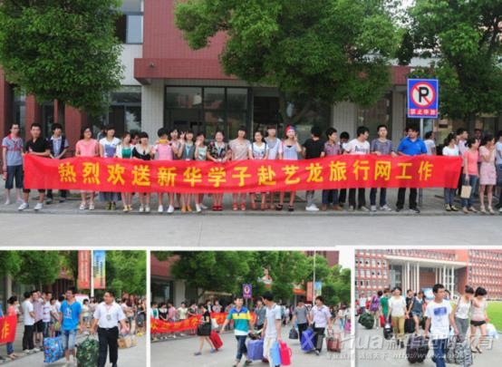 奔赴艺龙旅行网上岗就业的新华学子与院领导合影留念