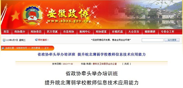赵韩指出,我们必须认识到,随着社会的进一步发展,信息化已成为优质教育资源公平化的重要途径之一,广大基层学校的信息化建设力量急需进一步加强。此次培 训班的目的,将在信息化基础应用的基础上,进一步提高学员应用技巧与能力。他希望学员们要把握此次学习机会,刻苦学习,在信息化实用结合上努力提高自身 水平。自2005年以来,省政协已牵头举办了8期中小学计算机教师培训班,共培训基层中小学教师800多名。今年,省政协教科文卫体委与省教育厅研究决定,在全省实施“扶持皖北薄弱学校信息技术应用能力援助计划”,该计划用五年时间,拟培训教师600人。