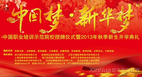 最后,让我们预祝本次“中国梦·新华梦”中国职业培训示范院校授牌仪式暨2013年秋季新生开学典礼圆满成功!