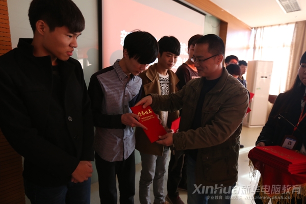 安徽新华电脑专修学院院长助理王科为就业班优秀学子颁发荣誉证书