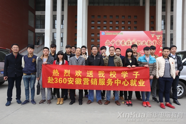安徽新华电脑专修学院副院长孙礼平、院长助理王科一行欢送就业班学子赴360就业