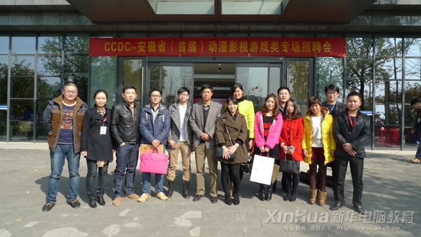 受到合肥高新区动漫基地的热情邀请,2014年11月18日,安徽新华电脑专修学院创就业指导中心杨秀贵主任带领动漫游戏专业的老师和学生参加了CCDC安徽省(首届)动漫影视游戏类专场大型招聘会,这也是安徽省首次针对数字文化创意人才的专场招聘会。积极为我院动漫专业的学子拓展更为广阔的就业市场。
