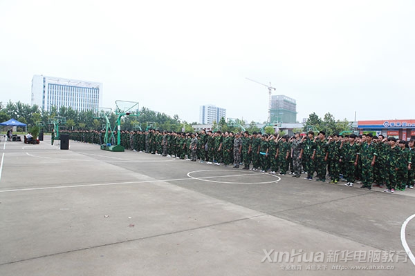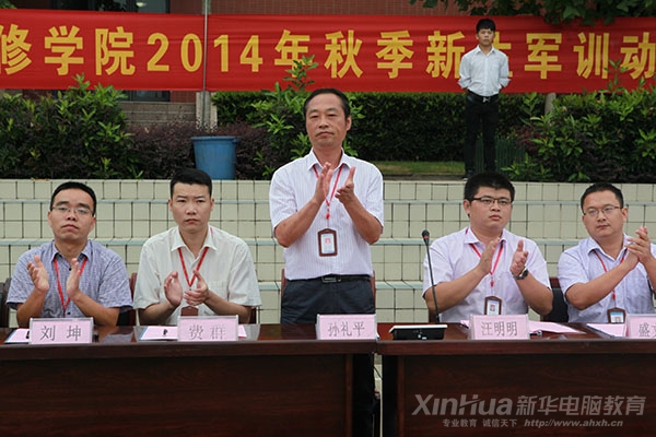 在嘹亮的军歌之中,安徽新华电脑专修学院副院长孙礼平饱含激情宣布军训开始