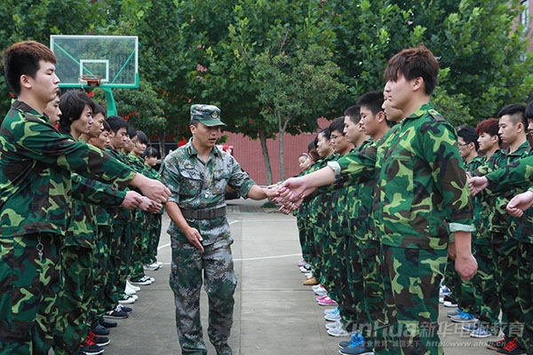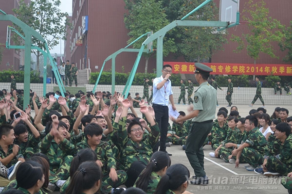 “我们考虑新生多数是想法新奇的90后,他们的一大特点就是喜欢随性、新奇,对一些死板的东西会比较排斥。所以,我们在军训开始前,为了使军训能够收到预期的效果,在形式上也做了很多改变,下了很大功夫”安徽新华电脑专修学院副院长孙礼平笑着说到。在此次军训中,安徽新华以突出学生和教官互动为主,用一些互动游戏增强军训的娱乐性和趣味性,让学生在一种比较轻松愉悦的心情下达成军训的目的。像:个人军歌对抗赛、班级对抗赛等互动强烈的活动形式,学生在这种环境中,愿意主动去表达自己,与同学打成一片,认识到团结的重要性,也同时为接下来的学习生活打下基础。