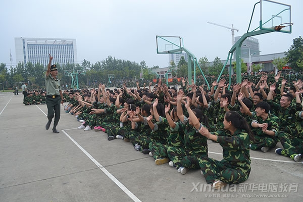 安徽新华电脑专修学院孙礼平副院长的温情寄语带给所有新同学莫大的精神鼓舞,他们急切的想在训练场中展现自己的雄姿。“哈哈哈哈···”“冬瓜皮,西瓜皮,**班不唱耍赖皮”此起彼伏的呼喊与放释情怀的开怀大笑在安徽新华电脑专修学院的训练场来回传递。别开生面的军训,让新生的脸上始终挂着灿烂的笑容。