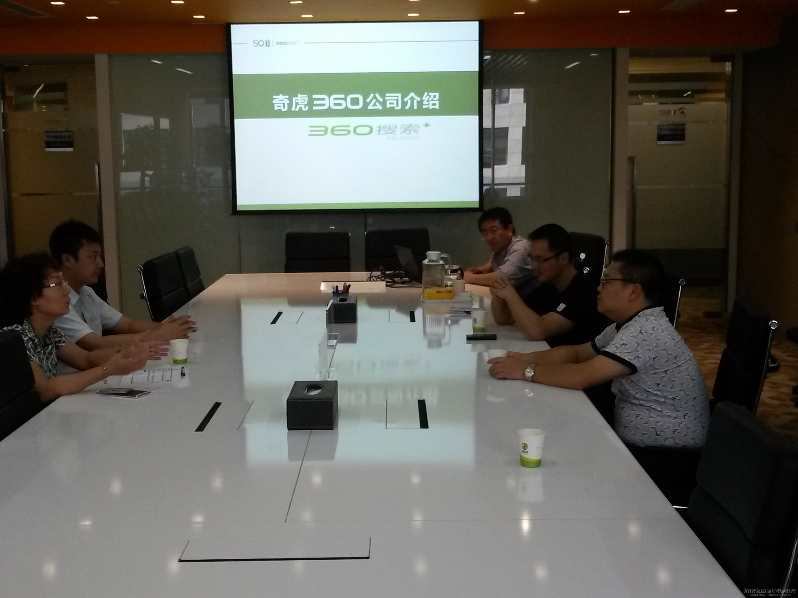 在360公司北京总部的会议室,校企合作经理李志军向吴院长一行介绍了360公司的发展情况。据介绍,目前360公司是中国第一大互联网和移动互联网安全公司,同时是全国第一大浏览器公司,拥有庞大的用户数量,市场渗透率高,在行业中具有领先地位。随后,李经理介绍了360的企业安全产品、创新力量、商业模式,并详细介绍了360的七大创新产品如360安全卫士、360杀毒、360手机卫士、360手机助手等。李经理还对360的品牌影响力、市场份额、用户群体分布、代理商渠道、专利成果等进行了展示。在听了李经理的阐述后,吴院长一行对360公司的专业水平、行业优势和发展前景表示赞许。360公司对新华教育集团高度认可,希望能与新华开展大规模合作,实现校企合作。