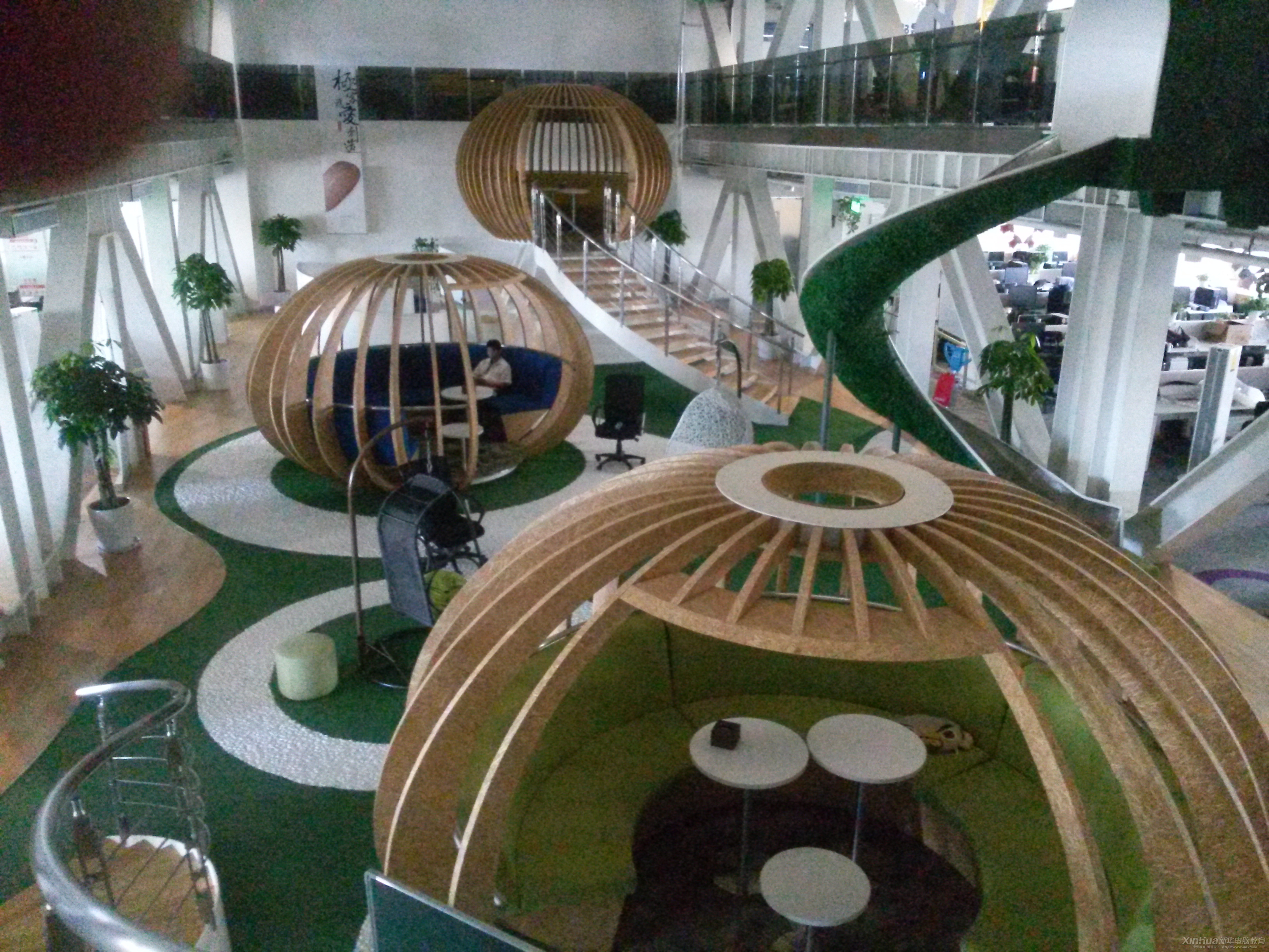 接着,在360公司权惠经理、李志军经理、田野经理的陪同下,吴院长一行在360公司内参观。办公区域宽敞明亮,电脑、桌椅井井有条,绿植点缀,生机盎然。其中最有特色的要属360的南瓜屋。据介绍,南瓜屋以造型像南瓜而得名,主要是360员工用来开会的地方。有趣的是,员工在南瓜屋开完会后,可以顺着滑梯直接滑下来,为工作增添乐趣。南瓜屋旁边还有特制的摇椅,别具一格。吴院长一行也在南瓜屋体验了一下,对360轻松、独特的办公氛围和企业文化表示赞赏。