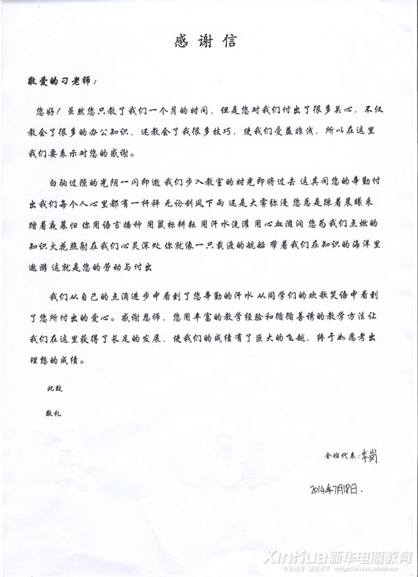 一个月的时间里,新华老师向学子们传授了很多办公的知识和技巧,学子们通过理论和实践的学习,获益匪浅。据了解,参加特训营的学子中,有不少人之前并没有过相关的经验,属于“零基础学习”,他们很担心能否取得良好的学习效果。但进入新华办公自动化特训营后,他们的这些顾虑很快就消除了。老师们丰富的教学经验和循循善诱的教学方法,让学生们快速地吸收和掌握知识。同时,通过实际的上机操作和实践,很快便将知识转变成了扎实的技能。“这一个月的时间繁忙而充实,相比之前的我,短短的时间就掌握了一技之长,感到收获满满。我对自己的未来充满信心,相信这门技能一定能为我今后人生梦想的实现插上翅膀!”新华办公自动化特训营学子李岗如是说。
