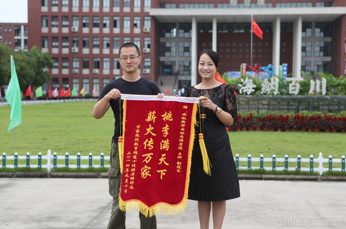 万家热线为安徽新华电脑专修学院老师王科颁发锦旗
