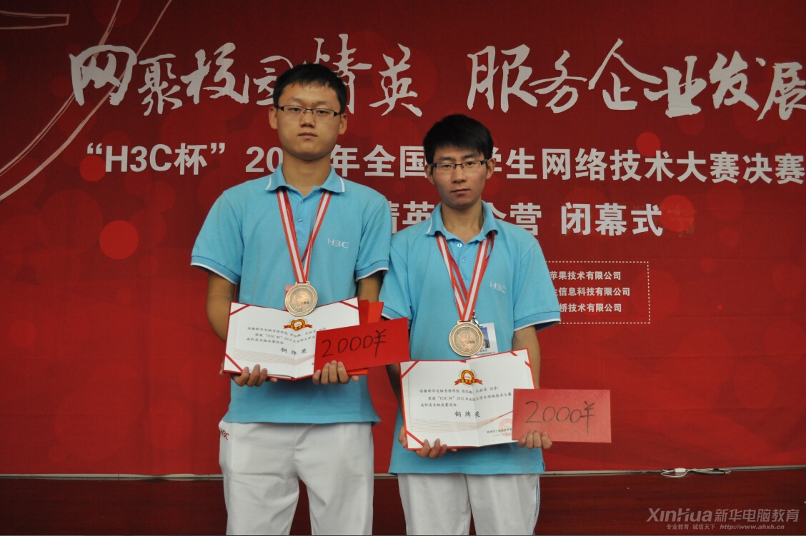 安徽新华电脑专修学院学子张怀鹏、孔林青同学在“H3C杯”2012年全国大学生网络技术大赛总决赛中喜获大奖