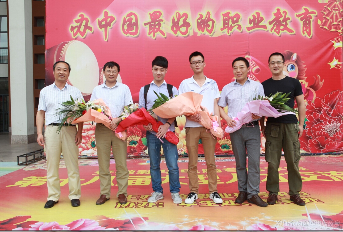 安徽新华电脑专修学院在2014H3C杯全国大学生网络技术大赛中获奖老师、学子与领导合影留念