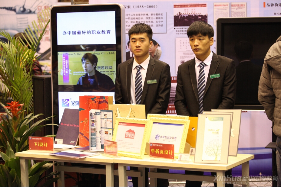 技工节现场活动丰富多彩,现场展示了我市15家技工院校和职业教育培训机构的最新成果、师生制作工艺物件和优秀作品等。安徽新华电脑专修学院作为参展学院代表之一,展台位于二楼中央,展区内学校工作人员各司其职,努力为技工节顺利开展做准备。现场展架准备了自编的优秀教材供参观者了解学习,展台摆放新华学子的优秀包装设计作品,电脑演示学生优秀设计作品,大屏幕播放学子的部分创意动漫设计视频,无不引人观望驻足留恋。现场还有优秀专业学生代表耐心为参观者答疑解惑,本次参展有荣事达、TCL家电、美的、江淮汽车、中国电信、安徽联通、国美电器等知名企业,其中相关参会单位对我校的包装设计作品表现了强烈的兴趣,赞赏其不菲的商业价值。