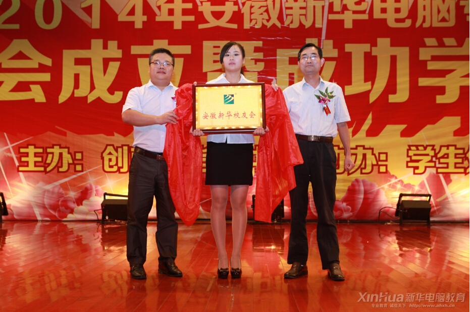 安徽新华电脑专修学院院长吴元红与新华教育集团就业部部长袁种宝为校友会成立揭牌