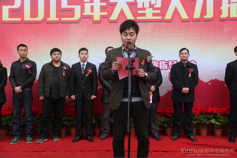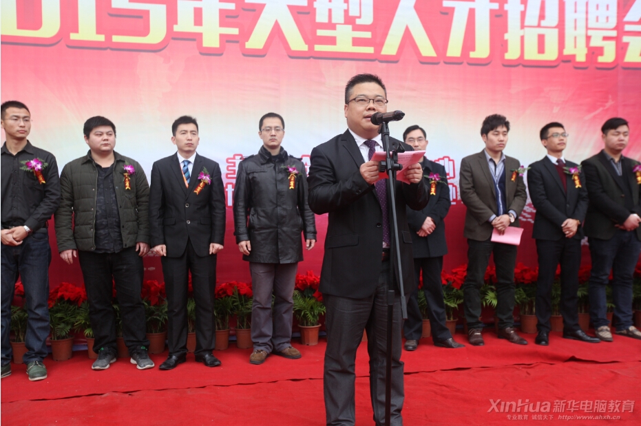 随后济南九创装饰工程有限公司合肥分公司李宁总经理发表讲话:安徽新华用爱和责任书写了“专业教育、诚信天下”的真实含义,创新生活是我们企业的文化,而新华培养的大批创新型综合型IT技能人才正是我们公司极度需要的,我们为新华学子提供项目实战平台,望新华学子在公司生产线、研发能力、体制文化各方面都能颠覆传统,推陈出新。另外李宁强调,要积极构建招聘方和求职人员的沟通桥梁,安徽新华作为专业电脑学校更要为企业、为社会培养更多优秀的IT人才。