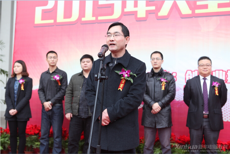 安徽新华电脑专修学院院长吴元红在台上发表重要讲话